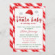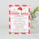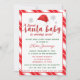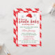 Celebre e chá uma futura mãe que está tendo um bebê durante o feriado! Esta design é muito festiva com o texto "A Sweet Papais noeis Baby is Coming Brevemente". Um chapéu de Papai Noel está no texto junto com falso falso floco de neve brilhante. As listras de menta clássicas estão na frente e no verso do convite.