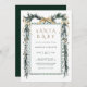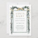 Este elegante convite para chás de fraldas apresenta uma aquarela de pinheiros de Natal decorada com fitas vermelhas, bagas ocas, verde botânico e caligrafia na moda. Para personalização mais avançada deste design, clique no link "Personalizar mais".