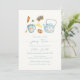 celebra o tema Um Bebê Está Começando, Chá de fraldas do Tea Party. design de conjunto de características minimalista de abóbora de água, bule de cereja, biscoito de mirtilo, canela, hortelã, pretzel, casca de laranja sobre fundo bege. esta coleção você encontrará um convite para o chá de fraldas, decoração do chá de fraldas, suprimentos para a festa do chá de fraldas, por favor personalize seu próprio chá de fraldas especial. Esta coleção perfeita para chá de fraldas de menino e menina, outono, primavera, chá de fraldas de verão.