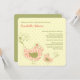Esta carta de convite para chás de fraldas de chique mostra uma ilustração de uma ave de mamãe doce com uma cauda suave e uma impressão de cor damasco rosa no corpo olhando para sua linda menina que se parece com seu amor. O fundo tem um pequeno padrão de bolinhas rosa.