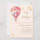 Um balão de ar quente cor de rosa e pêssego com estrelas ouros. O convite de chá de fraldas estilo Vintage celebrando uma menina. Texto: Oh Querida! Pêssego fundo colorido. Personalize e adicione um nome e detalhes da parte.