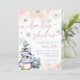Inverno cor-de-rosa pincelado convite para chá de fraldas de pinguins.