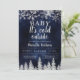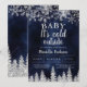 Querida, está frio lá fora! Celebre o seu bebê vindo com este brilho prateado faísca neve e flocos de neve, com pinheiros prateados brilhantes sobre um elegante fundo azul-aquarela marinho de inverno.
