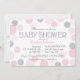 Glitter prateado e cor-de-rosa espalhados poka-pontos modernos do cartão de convite do chá de fraldas.