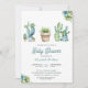 Convite Chá de fraldas de Potes de Cactus com Verdura Sucu