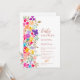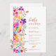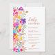 Uma moderna e delicada mão pintada de flores silvestres de jardim em tons brilhantes, rosa, vermelho, azul, amarelo e verde, com uma elegante letra de pincel para celebrar seu chá de fraldas de estilo ao ar livre de verão.