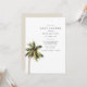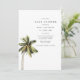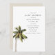 Este convite para chás de fraldas apresenta uma palmeira aquarela e um design minimalista moderno. Este convite é perfeito para qualquer evento de bebebe na praia, tropical, ilha ou destino.