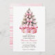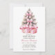 Chá de fraldas Pink Christmas Gift(s) - perfeito para meninas gêmeas! com uma bonito árvore de Natal e dois presentes enfeitados com flores e arcos cor-de-rosa.