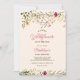 Um pouco de flor silvestre está a caminho! As flores silvestres do pastel boêmiano primavera chá de fraldas de verão com flores bonito do campo selvagem em boho retro laranja, vermelho, pêssego, folhas verdes, samambaia e muito mais, com uma tipografia com script escovado sobre um elegante e editável fundo de marfim bege mole.