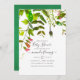 Fortaleza verde e primavera branco convites para chuveiros de bebês com elegante tipografia de escrita manual, personalizável para suas especificidades de evento.