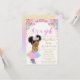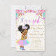 chá de fraldas do arco-íris com uma adorável menina étnica africana americana com um cabelo bonito e afro. Ela está vestindo um adorável tutu arco-íris e uma banda de ouvido unicórnio. Este convite para chás de fraldas unicórnios é facilmente personalizado para o seu evento simplesmente adicionando o texto de sua escolha.