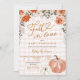 EDITÁVEL Queda No Amor Chá de fraldas Laranja Gingham Pumpkin Convite Russo Elegante Terracotta Wildflower Autumn Pumpkin Partido Chá de fraldas