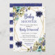 Convite Chá de fraldas de Quadro das Flores de Verão Azul