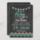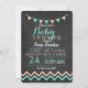 Personalize esta elegante e retrorativa bandeira de pêssego e hortelã verde e padrão de listras de fevron retro chalkboard vintage, giz, veja o convite do chá de fraldas. Ano perfeito para primavera, verão, outono ou chás de fraldas neutros no inverno.