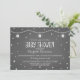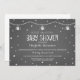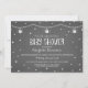 Convite para chás de fraldas giros e bonitos em cinzas de carvão e branco com texto divertido, escrito à mão, corações, lanternas e padrões de quadro.