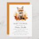Convide convidados para comemorar as mamães a serem com estes adoráveis convites para chuvas de bebês com temática florestal. O convite para chá de fraldas neutro por sexo apresenta uma ilustração aquosa de uma raposa bebê sentada sobre folhas do outono em tons de laranja, vermelho e amarelo. Personalize os convites para o chá de bebê de raposa bebê com o nome e os detalhes do chá da futura mãe.