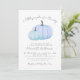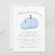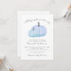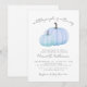 Um Pequeno Pumpkin Está A Caminho - O Convite Ao Chá de fraldas Fall Celebra a chegada com este doce e simples convite ao chá de fraldas, perfeito para um rapaz e ideal para uma reunião de outono ou outono. No topo, a frase "A Little Pumpkin Is On The Way" é escrita em fontes de cinza usando uma mistura de roteiro manuscrito e estilos de serifa clássicos para um olhar suave e elegante. O design apresenta duas abóboras em tons macios de azul perto do fundo, mantendo as coisas mínimas e doces sem salpicos ou sobreposições extras. Um fundo branco limpo mantém a aparência geral simples e moderna, enquanto os detalhes do evento são claramente organizados sob a trabalho de arte na coordenação de fontes de cinza. Este convite é totalmente personalizável — você pode alterar o texto, as fontes e o layout para ajustado perfeitamente o evento. Uma escolha encantadora para um chá de bebê durante a temporada de outono, mas suave e doce o suficiente para trabalhar a qualquer hora do ano. Disponível como um convite impresso ou um ficheiro digital transferível para correio eletrônico ou impressão localmente.