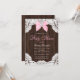 Lace branco, arco cor-de-rosa e pérolas com chá de fraldas rosa e cor-de-rosa sobre fundo da madeira e castanho. Este suave convite para chás de fraldas rústicos cor-de-rosa e castanho é facilmente personalizado para o seu evento, adicionando os seus detalhes no estilo de letra e cor, bem como o texto da sua escolha.