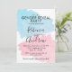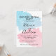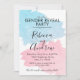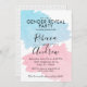 Azul ou Rosa? Este convite simples e moderno convida os hóspedes a adivinhar o gênero do seu próximo pacote de alegria! Divisórias de cor d'água azul e rosa formam o plano de fundo deste convite para na moda. É um texto san serif e nomes de script que são facilmente editáveis para personalizar o seu evento. A bolinhas atrás com dois corações cor-de-rosa e azuis elogia os padrões ousados na frente do convite.