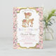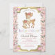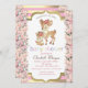 Veado de bebê bonito com rosas em fundo listrado de ouro. Esses convites para chuveiros de bebês são facilmente personalizados para seu evento simplesmente adicionando seus detalhes.