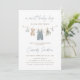 Celebre a chegada de um pequeno com este elegante convite para chá de fraldas de roupas de bebê azul.