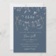 Este é um cartão de convite para chás de fraldas minimalista, com roupas de bebê e um ursinho de pelúcia pendurado numa linha de roupas, decorado com delicadas ilustrações florais no topo, sobre um fundo azul escuro. O texto "Oh garoto" está escrito elegantemente. Todos os elementos são desenhados à mão. Se precisar de outro produto ou personalização correspondente, entre em contato comigo.