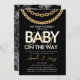 Convite Chá de fraldas de salto de anca preto e Dourado