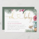 Querida! É um dia tão importante, comemore seu chá de fraldas de estilo com estes convites para bebês de folhagem tropical. Folhas de palma, orquídeas, hibisco, abacaxi e ave do paraíso. Com um guião de folha de ouro falso em chic mostrando as palavras "oh baby" ligadas por um coração. Inverter para uma cor verde sólida de fundo. Perfeito para chás de fraldas neutros em termos de gênero.