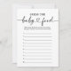 Convide os convidados do chá de fraldas a participar de um jogo de 'Adivinhem a Comida do bebê' com este simples e elegante cartão de jogo, apresentando um roteiro moderno com coração.
