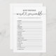 Faça com que os convidados do chá de fraldas participem de uma atividade de quebra de palavras com este cartão de jogo minimalista e elegante, apresentando um roteiro moderno com coração florescente.
