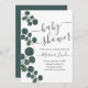 Convite Chá de fraldas de Script Verde Eucalyptus Watercol
