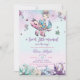 Um convite de chá de fraldas de sereia, com uma bela sereia, adorável sob as criaturas do mar e corais coloridos contra o fundo profundo do oceano. Personalize-o com os detalhes do seu partido de forma fácil e rápida, basta pressionar o botão personalizá-lo para reorganizar e formatar o estilo e o posicionamento do texto. Itens correspondentes disponíveis no repositório! (c) O feliz Cat Studio.