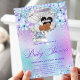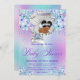 Chá de fraldas rosa e roxo de sereia com adorável sereia de bebês africanos com cabelo afro e concha de moluscos em um lindo fundo floral pastel. Este belo convite para chá de fraldas de sereia é facilmente personalizado para o seu evento simplesmente adicionando os detalhes do seu evento.