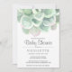 Chá de fraldas de uma garota botânica com uma grande cor verde-d-água pastel suculenta no topo e seus detalhes em uma fonte de cinza mole. A parte de trás tem uma lavagem de aquarela rosa. O grande sucesso no topo faz uma simples design e tem um elemento natural excelente. Estes convites são perfeitos para um chá de fraldas temático do deserto no primavera ou verão.