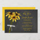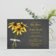 Este convite para chá de fraldas estilo Chalkboard de Susan de Olhos Negros, com olhos negros, apresenta um conjunto de três flores de Susan Olhada Negra, desenhadas por giz, com ouro bicolorado e pétalas de mogno, situadas à esquerda, na frente do convite para uma cinza / olhar de quadro negro - o retorno do convite é um ouro sólido personalizável para coordenar com as flores - por katz_d_zynes