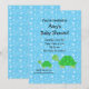 Chá de fraldas convite com tartaruga fofa mãe e tartaruga bebê em verde, padrão de corações azuis