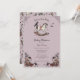 Este Convite para Cavalos de Rocha Roxo Gótico, Rochedo a Chá de fraldas, apresenta ilustrações desenhadas à mão de um cavalo de balanço vitoriano de madeira, corvo negro, rosas, flores silvestres, folhagem, teias de aranha e morcegos voadores, todos contra um elegante fundo lilás cor-de-rosa. A parte traseira apresenta um padrão elegante com esses mesmos elementos. Todo texto é editável.