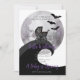 Esta aquarela esbranquiçada ilustrada pelo convite para chás de fraldas apresenta uma carruagem antiga para bebês sentada sobre um penhasco enrolado com uma grande lua cheia atrás dele. Os morcegos sobrevoam, somando à atmosfera assustadora deste convite. Espero que este cartão de chá de fraldas neutro seja a combinação certa de fofo e feiticeiro para a sua celebração.