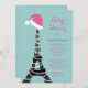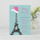 Convite Chá de fraldas de Torre Eiffel do inverno Turquesa