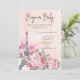Convite Chá de fraldas de torre Eiffel francês, rosa-paris