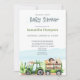 Convite Chá de fraldas de Trator Verde de Animais de Explo