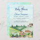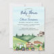 Convite Chá de fraldas de Trator Verde de Animais de Explo