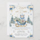 Convite Chá de fraldas de Urso Dourado Floral Azul-Inverno