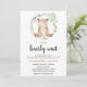 Celebre a chegada do seu pequeno com o nosso encantador Convite para Chá de fraldas de Urso Verde. Este doce design apresenta um urso adorável segurando um balão, dentro a uma delicada coroa verde redonda, perfeita para um chá de fraldas de galho ou floresta. Quer você esteja planejando uma reunião acolhedora ou uma celebração de feiticeiro, este doce convite para urso dá o tom de beleza. BBS799