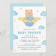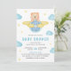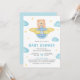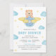 Convite Chá de fraldas de ursos de pelúcia azul-branca