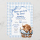 Convite Chá de fraldas de Vaca de Gingham Preppy Azul