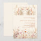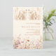 Um convite para Chás de fraldas elegante. Um fundo creme, cor bege, decorado com flores silvestres de cor aquosa, cor-de-rosa.