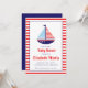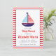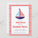 Este chá de fraldas divertido apresenta um belo veleiro em tons náuticos de vermelho, branco e azul. Personalize para um chá de fraldas de bebê.