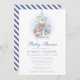 Celebre a chegada de um bebê com este adorável convite de chá de fraldas de tema náutico. Apresentando um urso aquarela em um veleiro com detalhes marinhos, esta design é perfeita para um encontro inspirado no mar. Tons azuis macios e ilustrações encantadoras acrescentam um toque caprichoso à celebração.