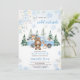 Celebre a chegada do seu pequeno com o nosso Chá de fraldas Blue Winter Woodland! Apresentando adoráveis animais de floresta, um caminhão azul vintage, pinheiros de neve, flocos de neve delicados, e florais macios, este convite captura perfeitamente o encanto arecedor de um chá de fraldas de menino "Baby It's Cold Outside". BBS565